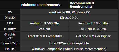 ### <mark style="color:yellow;">These are the minimum system requirements to run GUNZ on your computer:</mark>